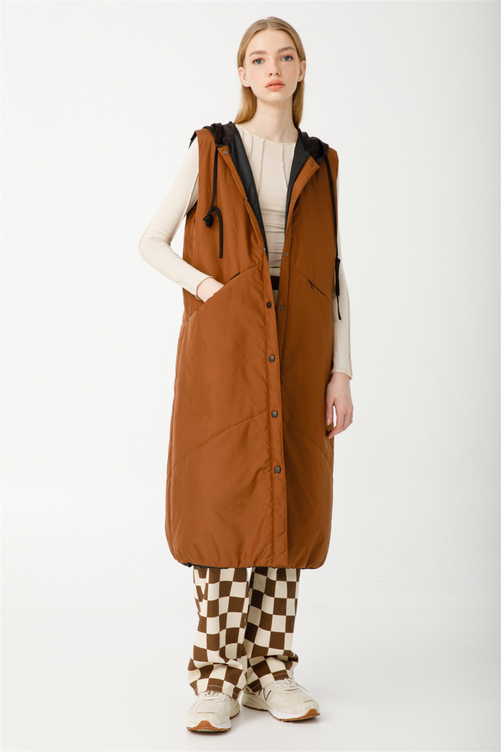 Zıt Çıtçıt ve Kapüşon Detaylı Baharlık Rüzgar Geçirmez Kapitone Yelek-Fındık (221710M YELEK-50)