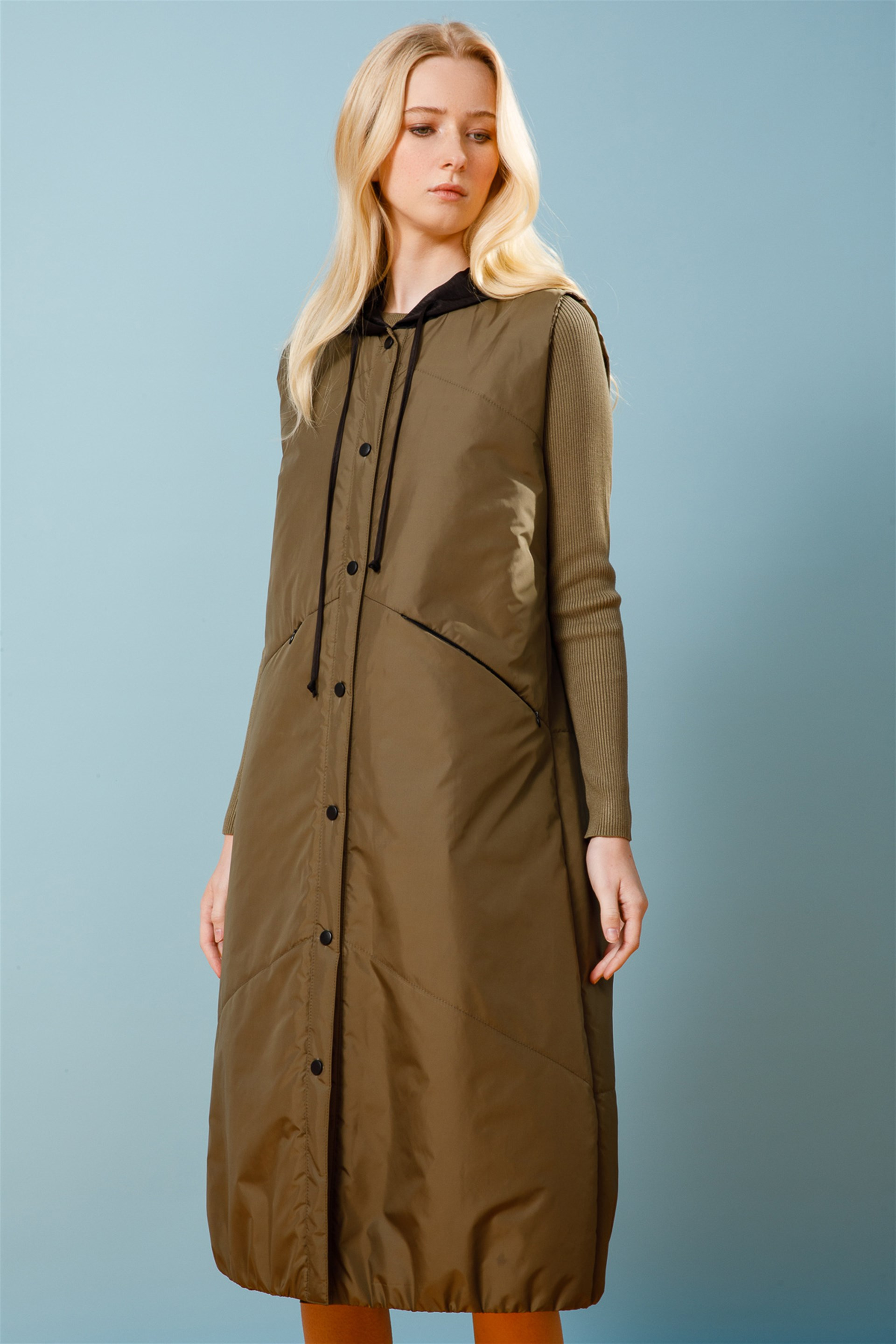 Zıt Çıtçıt ve Kapüşon Detaylı Baharlık Rüzgar Geçirmez Kapitone Yelek-Haki (221710M YELEK-20)