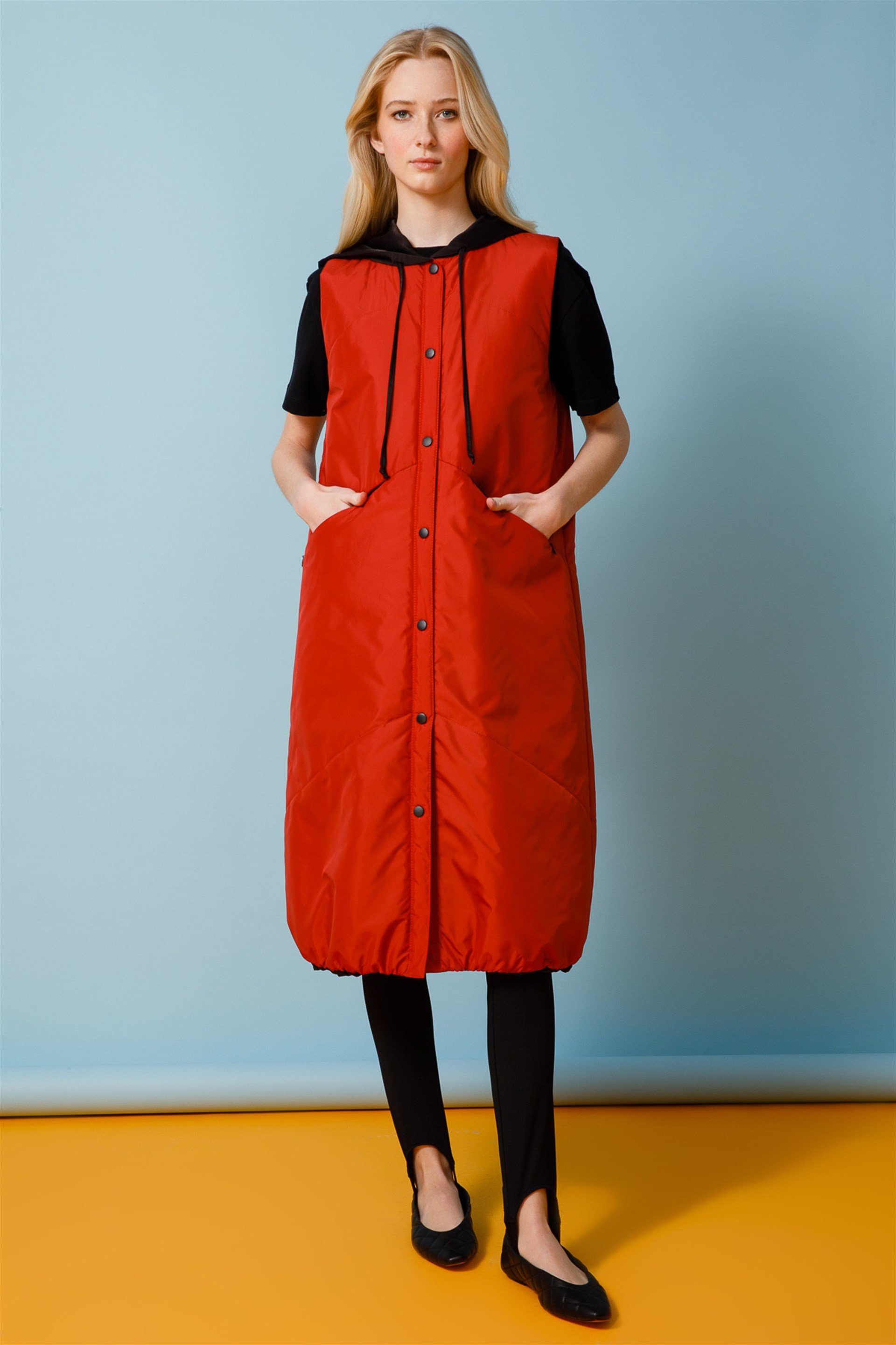 Zıt Çıtçıt ve Kapüşon Detaylı Baharlık Rüzgar Geçirmez Kapitone Yelek-Oranj (221710M YELEK-48)