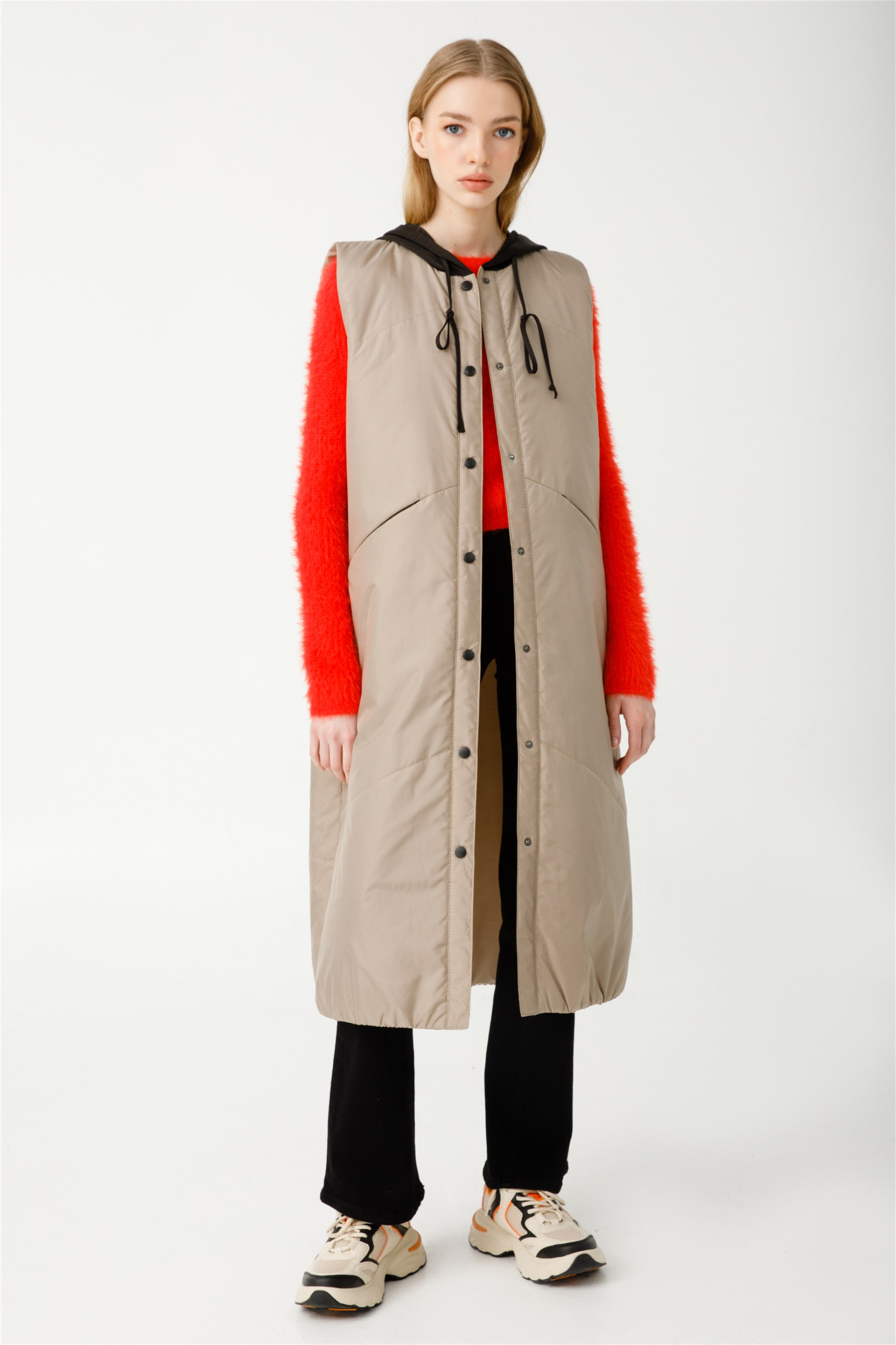 Zıt Çıtçıt ve Kapüşon Detaylı Baharlık Rüzgar Geçirmez Kapitone Yelek-Taş (221710M YELEK-12)