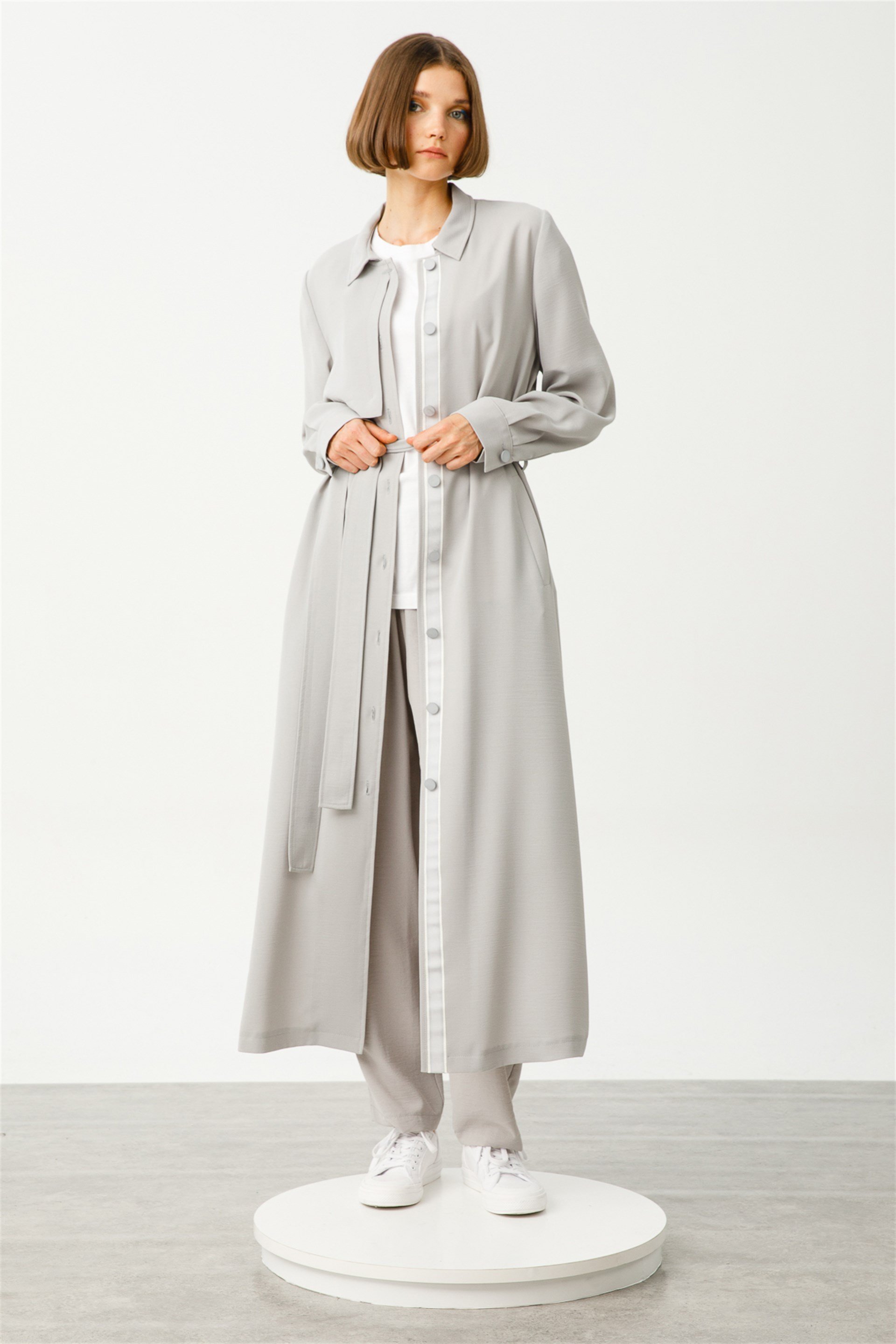 Zıt Çizgi Detaylı Aller Zor Kırışan Nefes Alan Kumaştan Kap Trench-Gri (221812M KAP-18)