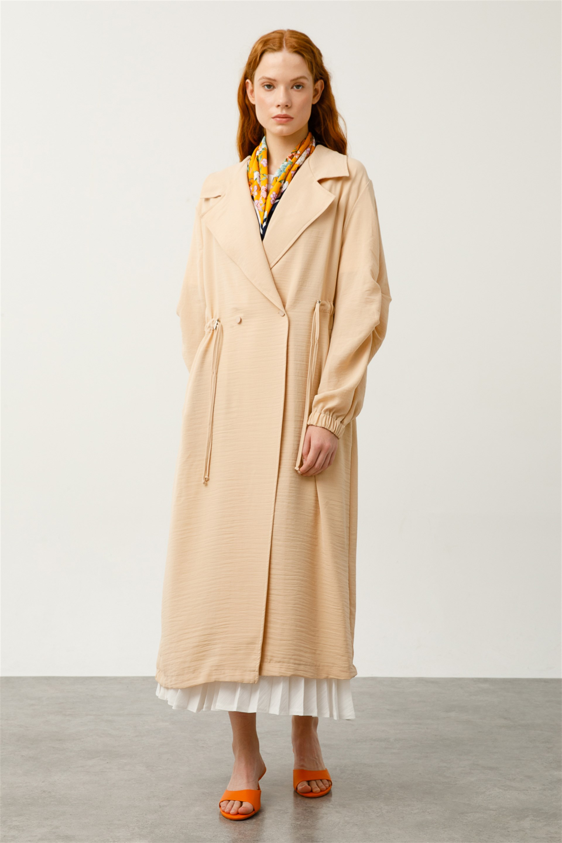 Zor Kırışan Kumaştan Kolları Pile Detaylı Hafif Trençkot-Taş (221891M KAP-12)