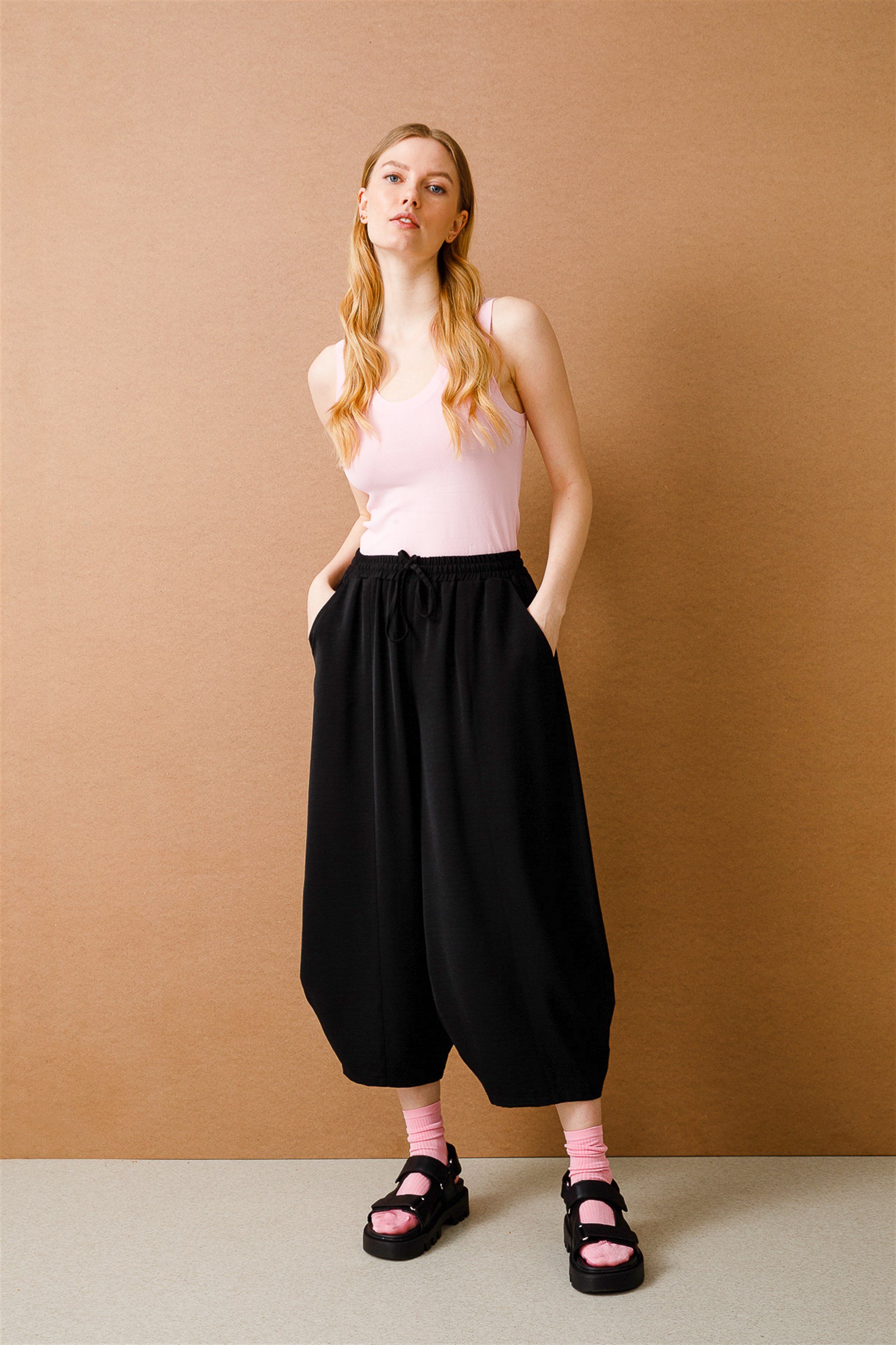 Zor Kırışan Spor Şalvar Pantolon-Siyah (221900M PANTOLON-01)