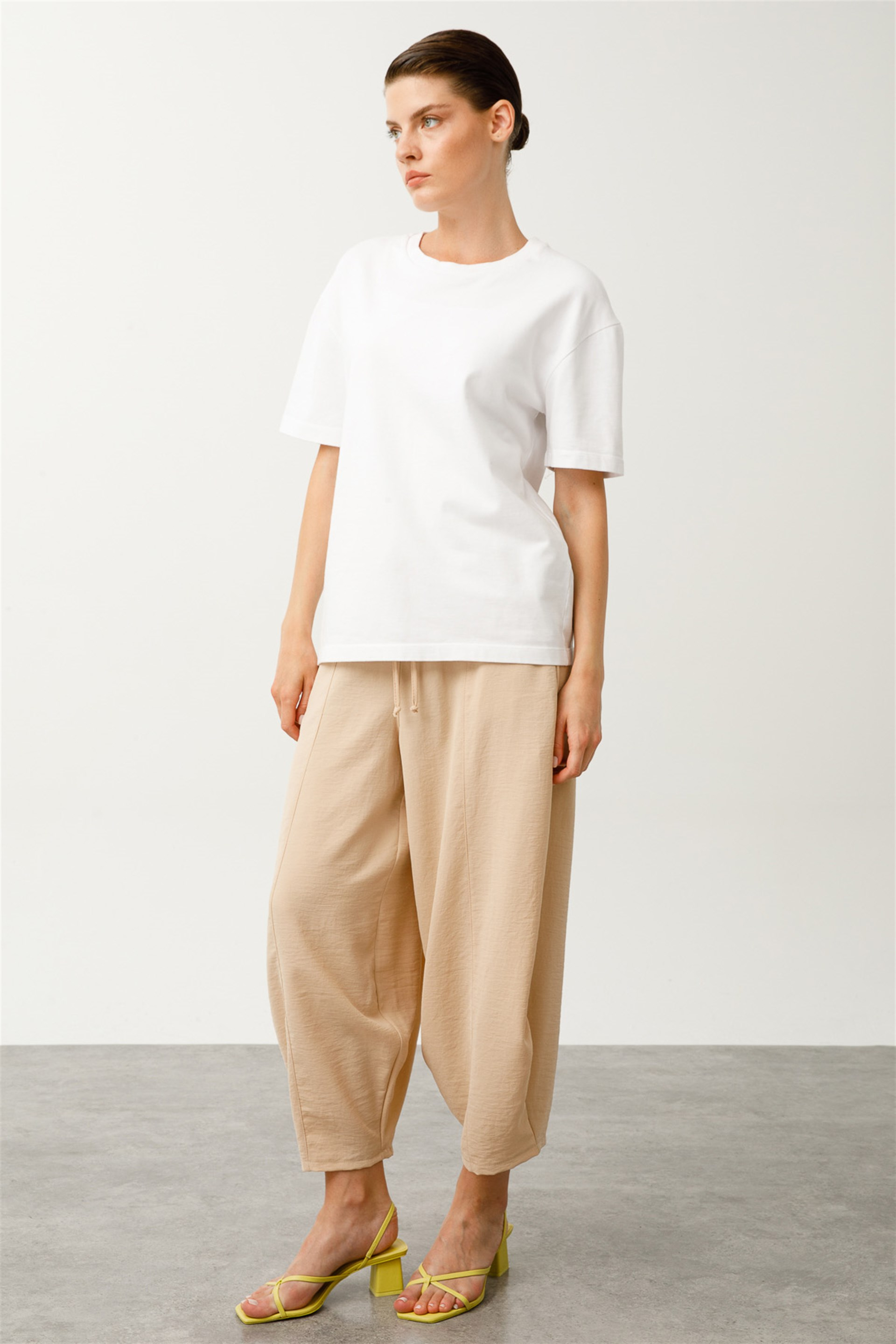Zor Kırışan Spor Şalvar Pantolon-Taş (221900M PANTOLON-12)