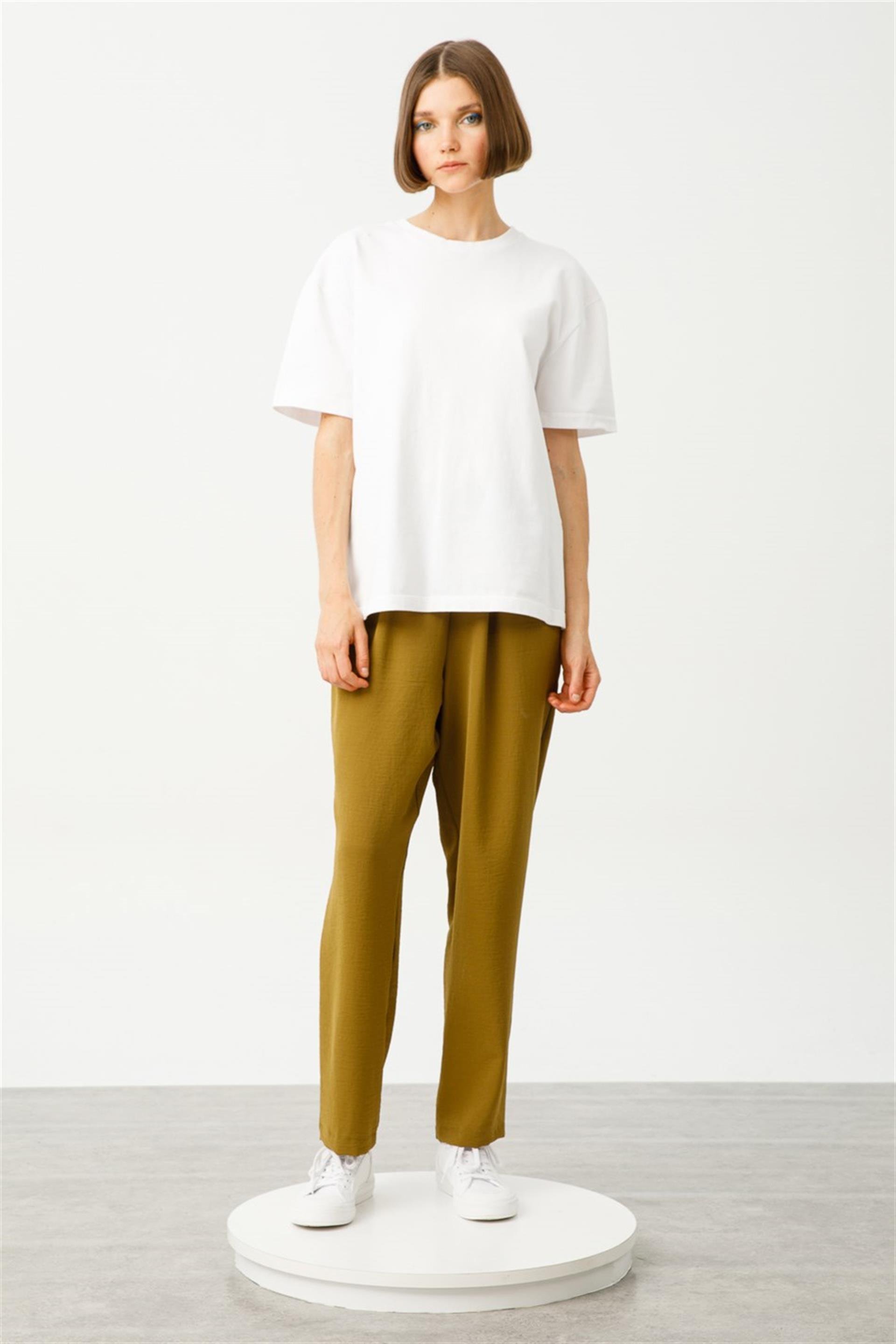 Zor Kırışan ve Nefes Alan Kumaştan Beli Lastikli Havuç Pantolon-Haki (231905M PANTOLON-20)