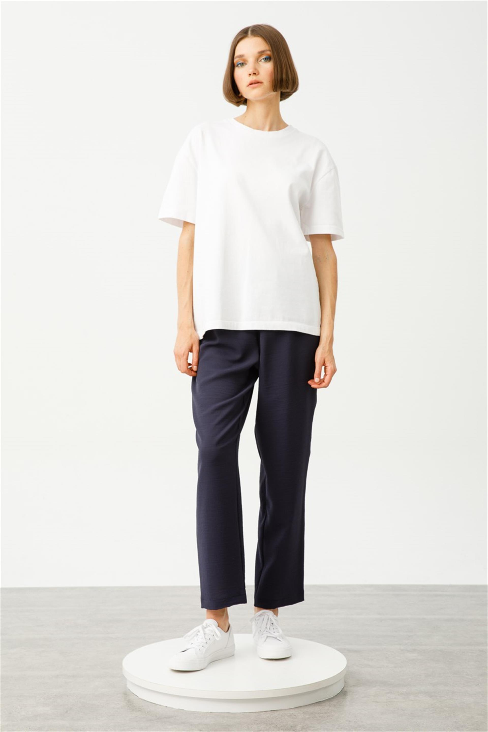 Zor Kırışan ve Nefes Alan Kumaştan Beli Lastikli Havuç Pantolon-Laci